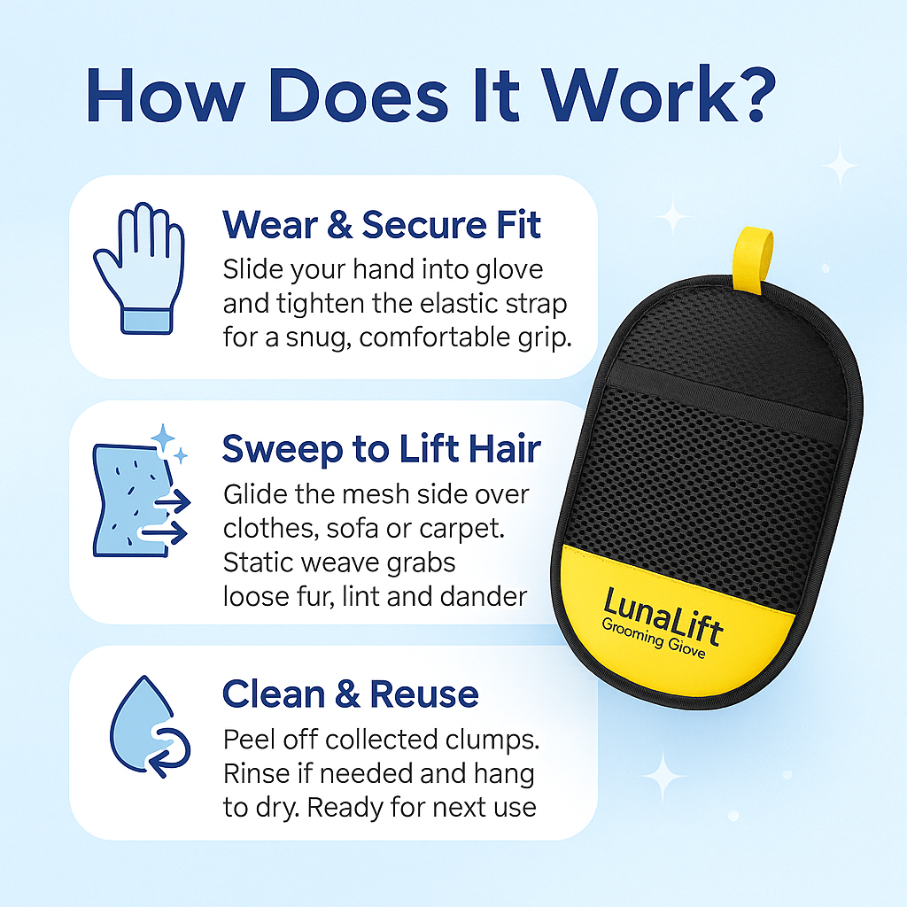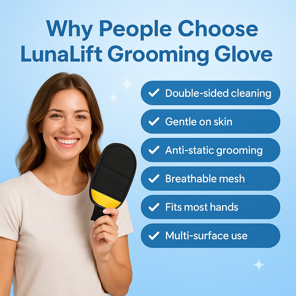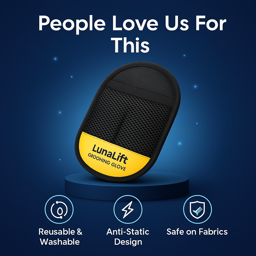 LunaLift Grooming Glove™ | Double-Sided Pet Hair Remover for Clothes & Sofa